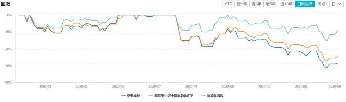 我们提取了2020年5月15日(蔡嵩松独立管理诺安成长的时间)-2022年9月15日的区间数据,诺安成长混合(320007.OF)的净值走势与半导体ETF(512480.OF)的拟合度较高,但不论是收益能力、还是回撤表现,诺安成长混合均差于半导体ETF,并差于半导体指数。