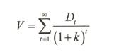 当然,上述例子是为了让普通投资者更容易理解股利贴现模型而设置的, 属于非常简单的一种。若上述案例中的分红额度能够永远持续下去,那就相 当于投资了一种永续年金产品,则该产品的现值如下: