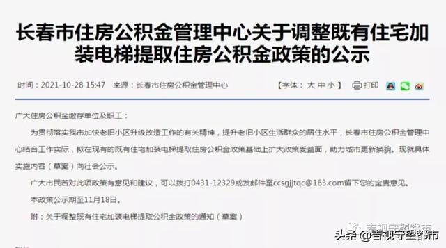 记者从长春市住房公积金管理中心了解到,为贯彻落实长春市加快老旧小区升级改造工作的有关精神,提升老旧小区生活群众的居住水平,长春市住房公积金管理中心结合工作实际,拟在现有的既有住宅加装电梯提取住房公积金政策基础上扩大政策受益面,助力城市更新换貌。
