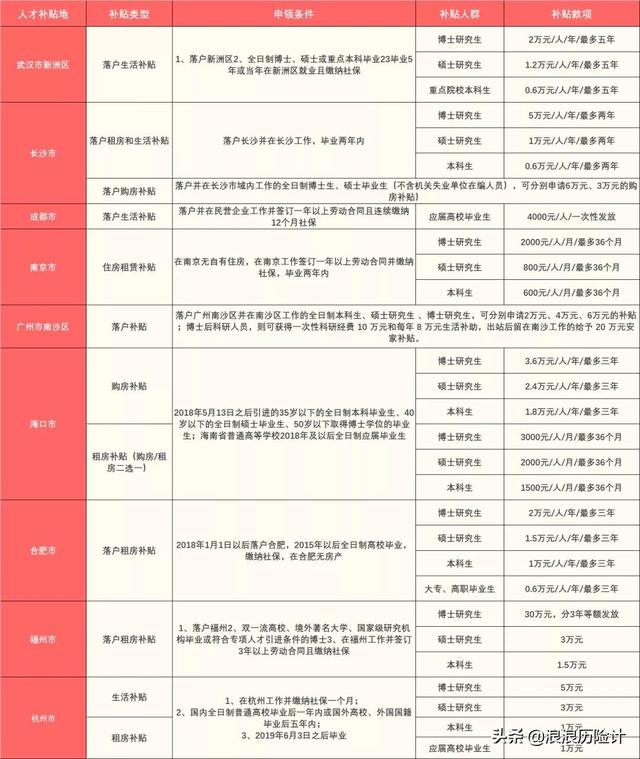 目前很多城市都有人才补贴政策,我简单列几个给大家看: