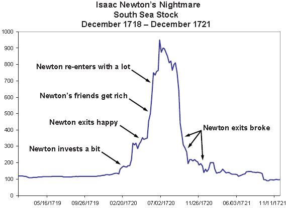 下图为英国著名物理学家牛顿在1718年12月到1721年12月南海泡沫期间的投资经历: