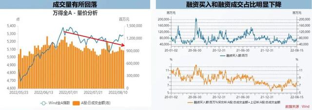 受房贷断供,佩洛西访台等因素影响消退,市场情绪有所复苏。市场成交量,融资买入额以及融资成交占比有所回升。