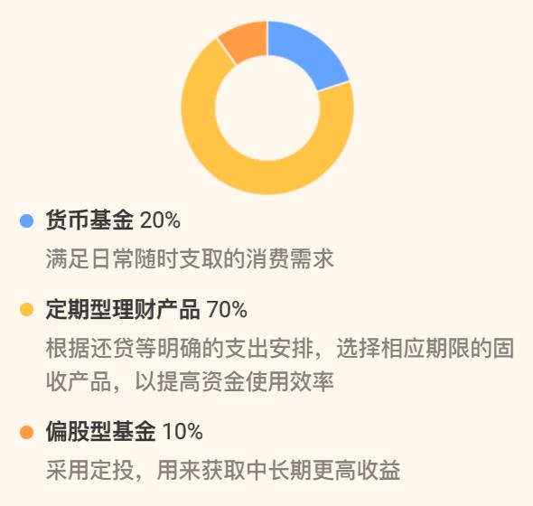 3)小部分资金建议以定投的方式参与到偏股型基金产品中以换取中长期更高收益;