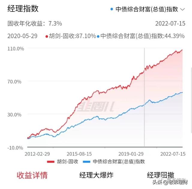 详解:基金经理胡剑、张凯頔。后面这个新基金经理应该是要培养的,也就是近期才刚刚成为基金经理的,我们主要看胡剑。其实胡剑已经很熟悉了,是市场上耳熟能详的基金经理。在固收领域颇有名气,其实这里也可以看出基金公司的作用,易方达基金公司在固收领域的强势确实不容小觑。胡剑本人管理了1200亿的资产,年化收益高达7.3%,投资年限也是超过了10年。也是一个奖项大满贯的基金经理。其管理的所有基金整体来看,就是以稳健为主! 长期跑赢同类型基金。