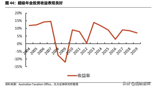 除去受到金融危机冲击的 2008、2009 年,超级年金均实现正向收益,相较其他国家收益表现不佳的养老金基金而言,超级年金展现了较为优异的长期投资收益。