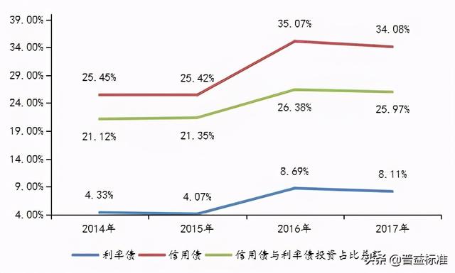 图1:2014-2017年(上)及2018-2019年(下)银行理财利率债及信用债投资占比
