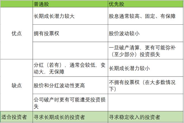 下图简要总结了普通股和优先股的优劣,熟记一下吧: